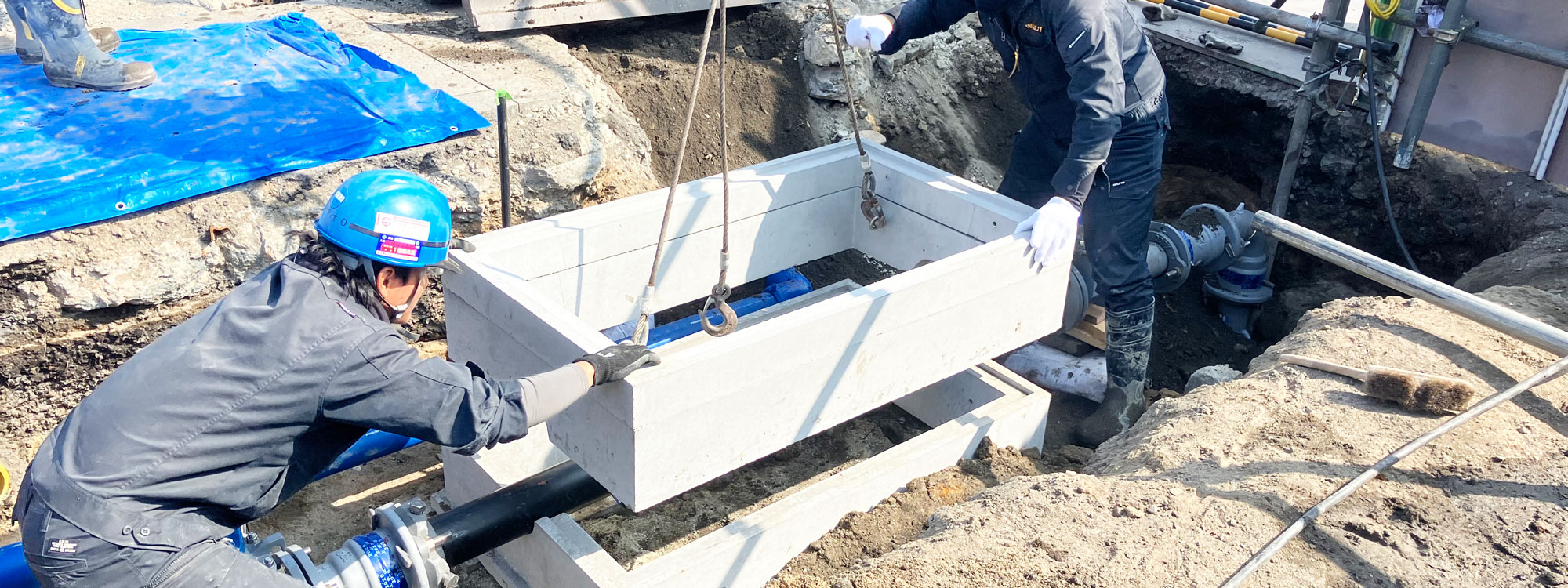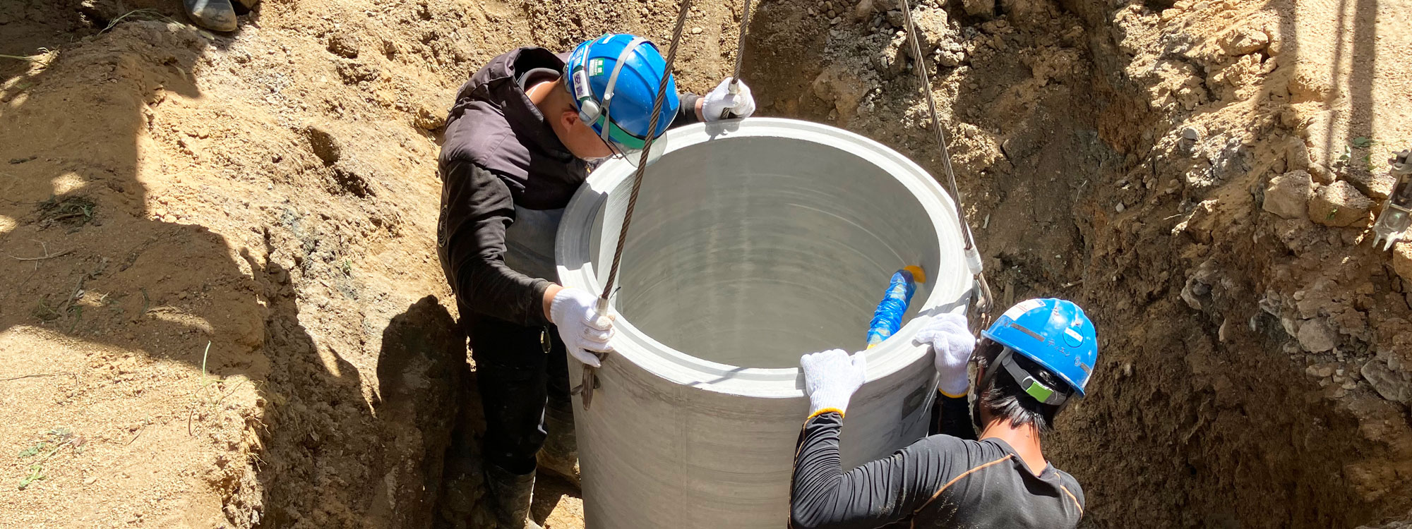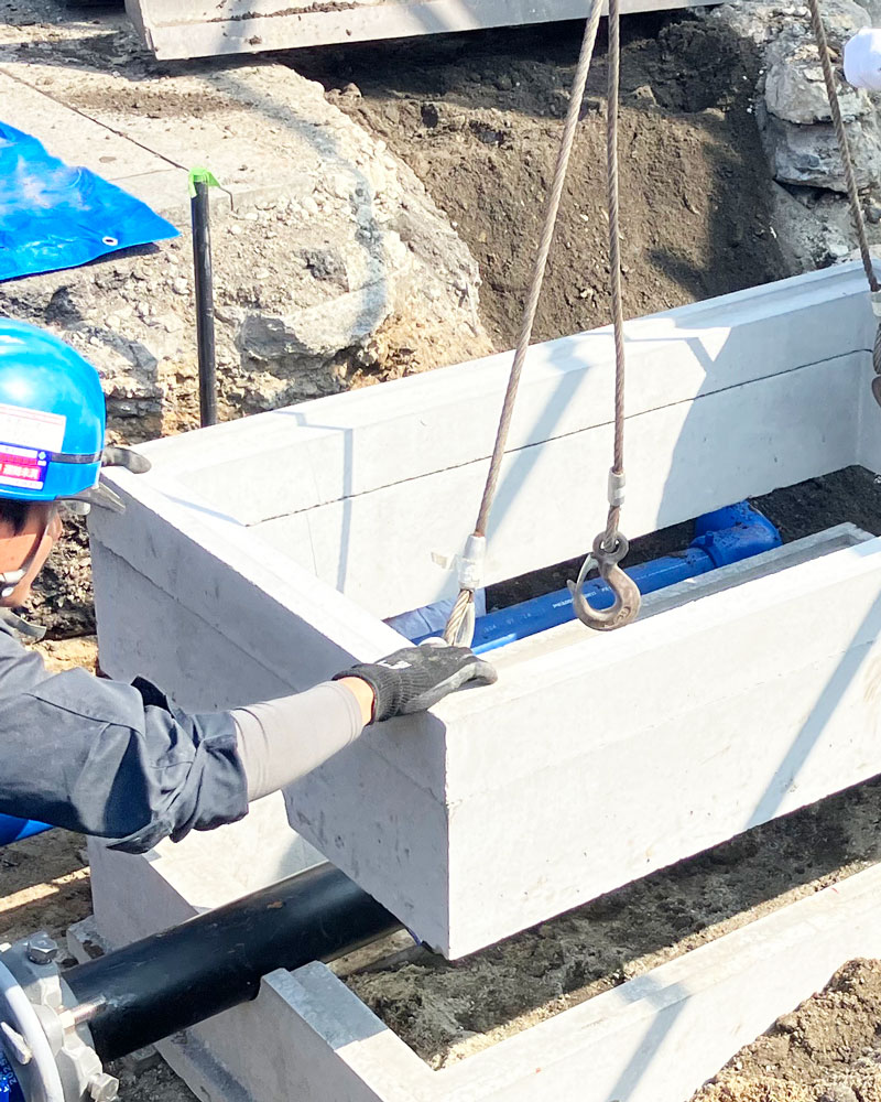 私たちは、上下水道工事を中心に地域のライフラインを支える工事会社です。